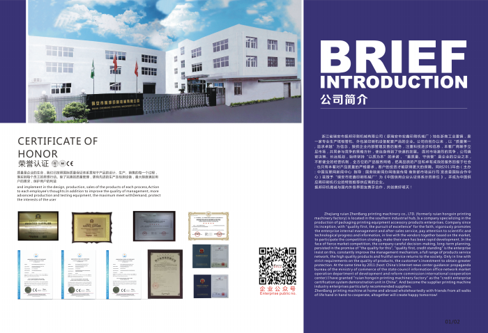 瑞安市振邦印刷機(jī)械有限公司地處浙南工業(yè)重鎮(zhèn),是一家專業(yè)生產(chǎn)外包裝印刷機(jī)設(shè)備及配套產(chǎn)品的企業(yè),主要產(chǎn)品有:柔版印刷機(jī)、模切機(jī)、檢標(biāo)機(jī)、復(fù)卷品檢機(jī)、紙吸管機(jī)、分切機(jī)系列不干膠印刷設(shè)備等;是中國印刷技術(shù)協(xié)會(huì)會(huì)員單位。